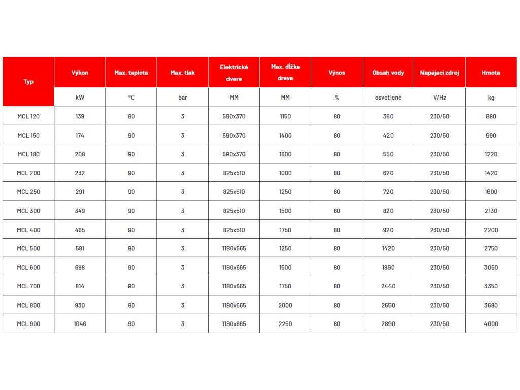 MCL je priemyselná séria kotlov na tuhé palivo so širokým výkonovým rozsahom (139 – 1 046 kW). Sú určené na prevádzku s akýmkoľvek typom tuhého paliva s minimálnym priemerom 30 mm: drevo, poľnohospodárske zvyšky, uhlie, brikety atď.